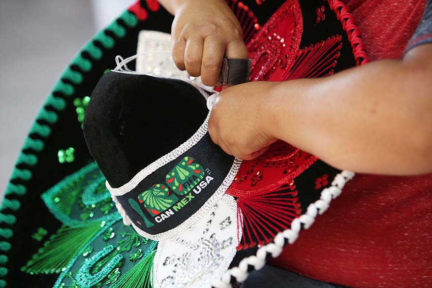 Lejos de procesos industriales masivos, los sombreros estilo charro que ahora llevan el sello FIFA nacen en hogares y pequeños talleres, donde artesanas y artesanos dan forma a cada pieza con técnicas heredadas por generaciones. Bordados, lentejuelas, aplicaciones y detalles minuciosos convierten cada sombrero en una obra única que representa la identidad mexicana.
